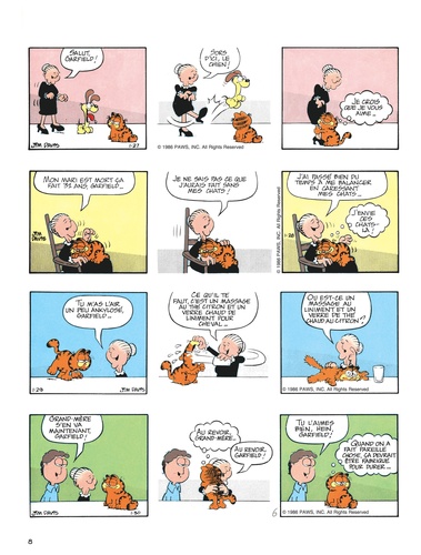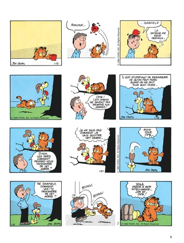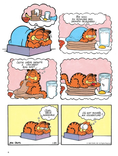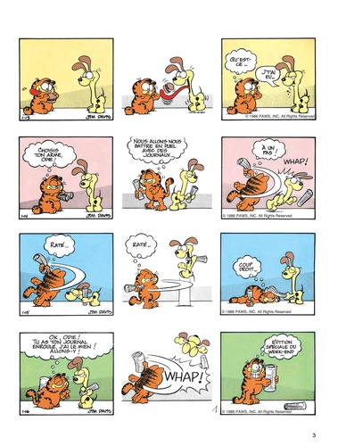 Le chat le plus paresseux de l'histoire de la BD voit le jour en 1978 dans la presse quotidienne et dominicale américaine. Garfield, adulé par son maître, peut savourer tout à loisir le plaisir de ne rien faire ; gras, toujours fatigué, toujours affamé, toujours bavard, il philosophe avec humour sur sa condition féline. En n'oubliant pas de s'alimenter et de se reposer, bien sûr...