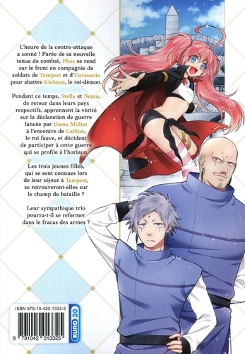 Découvrez les nouvelles aventures à Tempest de trois héroïnes pleines d'énergie dans ce nouveau spin-off de Moi, quand je me réincarne en Slime ! L'heure de la contre-attaque a sonné ! Parée de sa nouvelle tenue de combat, Phos se rend sur le front en compagnie de soldats de Tempest et d'Eurasanie pour abattre Kleiman, le roi-démon. Pendant ce temps, Stella et Nemu, de retour dans leurs pays respectifs, apprennent la vérité sur la déclaration de guerre lancée par Dame Millim à l'encontre de Callion, le roi fauve, et décident de participer à cette guerre qui se profile à l'horizon. Les trois jeunes filles, qui se sont connues lors de leur séjour à Tempest, se retrouveront-elles sur le champ de bataille ? Leur sympathique trio pourra-t-il se reformer dans le fracas des armes ?