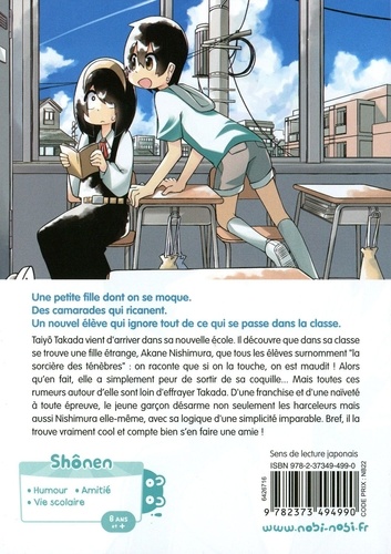 Taiyô Takada vient d'arriver dans sa nouvelle école. Il découvre que dans sa classe se trouve une fille étrange, Akane Nishimura, que tous les élèves surnomment "la sorcière des ténèbres". : on raconte que si on la touche, on est maudit ! Alors qu'en fait, elle a simplement peur de sortir de sa coquille... Mais toutes ces rumeurs autour d'elle sont loin d'effrayer Takada. D'une franchise et d'une naïveté à toute épreuve, le jeune garçon désarme non seulement les harceleurs mais aussi Nishimura elle-même, avec sa logique d'une simplicité imparable. Bref, il la trouve vraiment cool et compte bien s'en faire une amie !