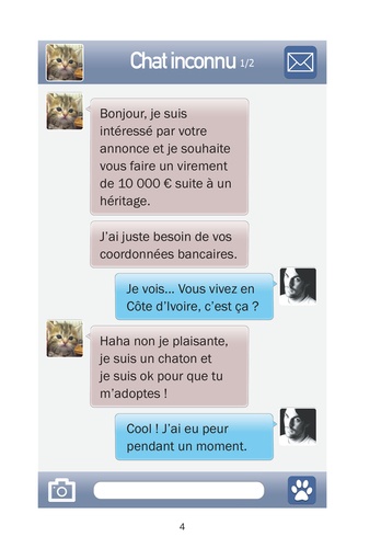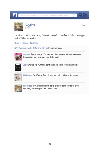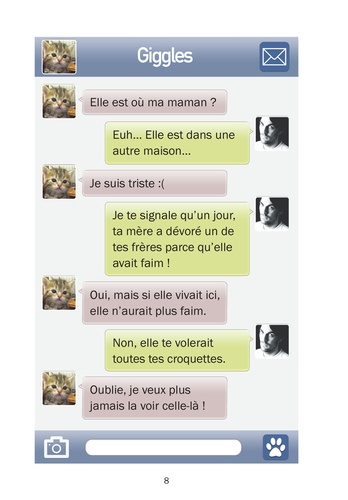 Lui c'est Giggles, un chat boulimique, expert en griffures sur canapé, accro à la sieste : un chat normal, somme toute, si ce n'est une petite particularité : Giggles adore envoyer des sms et fanfaronner sur les réseaux sociaux. Avec humour et malice (et parfois un brin de mauvaise foi), il nous fait partager son quotidien, ses bons plans pour obtenir toujours plus de croquettes, son amour (vache) pour son maître (et son horripilante copine), son addiction à l'herbe à chat, sans oublier ses plus grandes phobies (de l'aspirateur en passant par les puces).