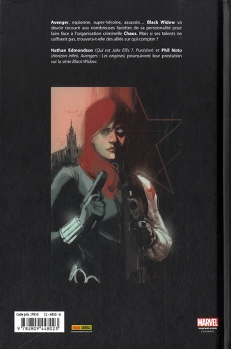 Avenger, espionne, super-héroïne, assassin... Black Widow va devoir recourir aux nombreuses facettes de sa personnalité pour faire face à l'organisation criminelle Chaos. Mais si ses talents ne suffisent pas, trouvera-t-elle des alliés sur qui compter ? Nathan Edmondson (Qui est Jake Ellis ?, Punisher) et Phil Noto (Horizon Infini, Avengers : Les origines) poursuivent leur prestation sur la série Black Widow.