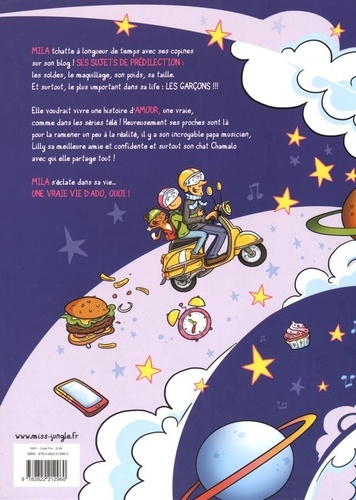 Mila tchatte à longueur de temps avec ses copines sur son blog ! Ses sujets de prédilection : les soldes, le maquillage, son poids, sa taille. Et surtout, le plus important dans sa life : les garçons ! ! ! Elle voudrait vivre une histoire d'amour, une vraie, comme dans les séries télé ! Heureusement ses proches sont là pour la ramener un peu à la réalité, il y a son incroyable papa musicien, Lilly sa meilleure amie et confidente et surtout son chat Chamalo avec qui elle partage tout ! Mila s'éclate dans sa vie… une vraie vie d'ado, quoi !