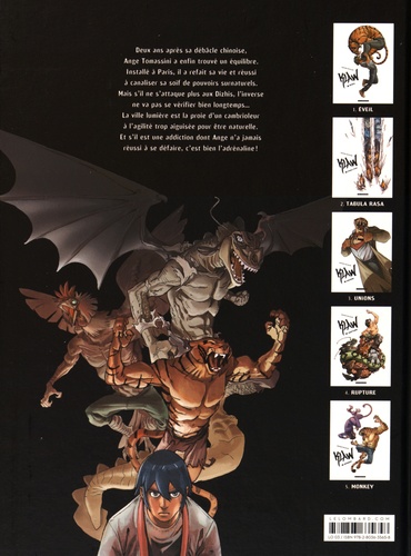 Installé à Paris au terme des événements chinois, Ange semble avoir refait sa vie pour le mieux : il maîtrise à présent le tigre qui est en lui, et son nouveau travail de publicitaire pourvoit amplement à son épanouissement. C'est sans compter l'irruption d'une dizhi inattendue, une jolie russe à l'agilité... simiesque !