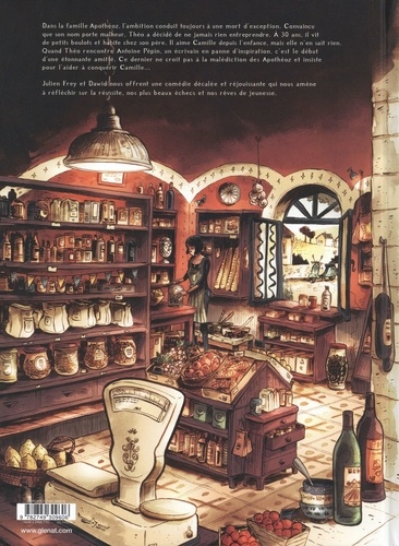 " Le succès, c'est d'aller d'échec en échec sans perdre son enthousiasme " ... Dans la famille Apothéoz, l'ambition conduit toujours à une mort d'exception. Convaincu que son nom porte malheur, Théo a décidé de ne jamais rien entreprendre. A 30 ans, il vit de petits boulots et habite chez son père. Il aime Camille depuis l'enfance, mais elle n'en sait rien. Quand Théo rencontre Antoine Pépin, un écrivain en panne d'inspiration, c'est le début d'une étonnante amitié. Ce dernier ne croit pas à la malédiction des Apothéoz et insiste pour l'aider à conquérir Camille... Le duo Julien Frey et Dawid nous offre une comédie décalée et réjouissante qui nous amène à réfléchir sur nos plus beaux échecs, nos rêves de jeunesse et notre capacité à faire face. Une pépite qui nous redonne le sourire et nous rappelle les vertus des rencontres fortuites. A lire de toute urgence.