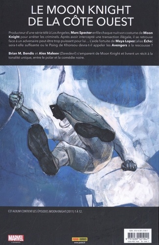 Producteur d'une série télé à Los Angeles, Marc Spector enfile chaque nuit son costume de Moon Knight pour arrêter les criminels. Après avoir intercepté une transaction illégale, il se retrouve face à un adversaire peut-être trop puissant pour lui... L'aide fortuite de Maya Lopez (alias Echo) sera-t-elle suffisante ou le Poing de Khonsou devra-t-il appeler les Avengers à la rescousse ? Brian M. Bendis et Alex Maleev (Daredevil) s'emparent de Moon Knight et livrent un récit à la tonalité unique, entre le polar et la comédie noire.