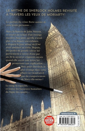 Le parfum du crime flotte autour de cette jeune personne... Mary, la fiancée de John Watson, se trouve au centre d'un étrange mystère. Son père, qu'elle n'avait plus revu depuis son enfance, a disparu le jour même où il lui avait annoncé sa visite. Depuis,des perles de grande valeur lui parviennent à raison d'une par an. Et le mystère s'épaissit encore quand elle reçoit une lettre lui promettant une explication... Mais pour Sherlock, le plus étrange dans cette. affaire ne viendrait-il pas du comportement de Mary elle-même ? Le sang, la rapacité, et toutes les bassesses humaines du Signe des quatre...