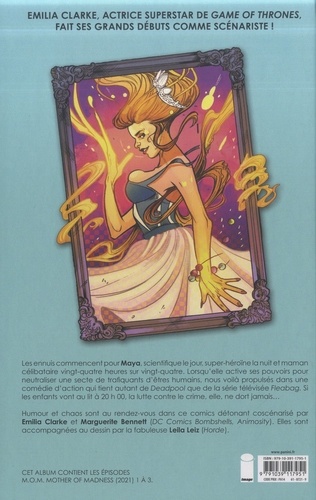 Emilia Clarke (Game of Thrones, Star Wars et Secret Invasion) fait ses débuts dans les comics ! Elle nous raconte dans M. O. M. , la vie de Maya : une scientifique le jour, une super-héroïne la nuit et une mère célibataire infatigable à tout moment de la journée ! Emilia Clarke est mondialement connue pour son rôle de Daenerys dans la série Game of Thrones. Dans ce one-shot, la Mère des Dragons a imaginé une autre mère aux pouvoirs surnaturels ! Accompagnée par Marguerite Bennett (Batwoman, X-Men : Years of Future Past) et Leila Leiz (Théophilia Werner, Hadj Moussa), elle signe un récit profondément féministe qui détourne les clichés sexistes, en transformant ces caractéristiques qui jettent l'opprobre sur les femmes (les règles, les émotions...) en super-pouvoirs.