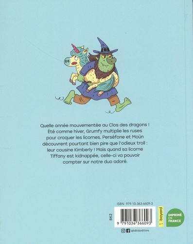 Quelle année mouvementée au clos des dragons ! Eté comme hiver, Grumfy multiplie les ruses pour croquer les licornes. Perséfone et Moun découvrent pourtant bien pire que l'odieux troll : cousine Kimberly ! Mais quand sa licorne Tiffany est kidnappée, celle-ci va pouvoir compter sur notre duo adoré.