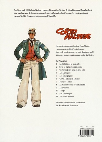 Aventurier élégant et ironique, Corto Maltese - amoureux de sa liberté et des femmes - traverse le monde, toujours en quête d'un trésor caché, d'un ami à sauver... ou d'une cause perdue à défendre. Pacifique sud, 1925. Corto Maltese retrouve Raspoutine, Steiner, Tristan Bantam et Bouche Dorée pour explorer une île inconnue, qui renfermerait l'une des dernières entrées vers le continent englouti de Mu, également connu comme l'Atlantide.