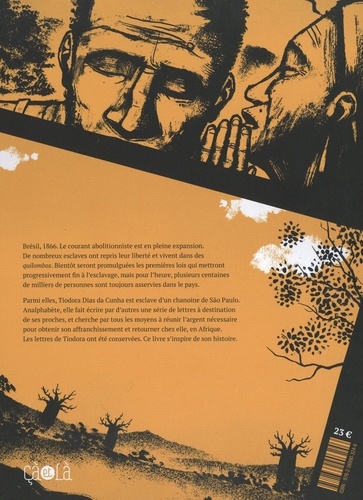 Brésil, 1866. Le courant abolitionniste est en pleine expansion. De nombreux esclaves ont repris leur liberté et vivent dans des quilombos. Bientôt seront promulguées les premières lois qui mettront progressivement fin à l'esclavage, mais pour l'heure, plusieurs centaines de milliers de personnes sont toujours asservies dans le pays. Parmi elles, Tiodora Dias da Cunha est esclave d'un chanoine de Sao Paulo. Analphabète, elle fait écrire par d'autres une série de lettres à destination de ses proches, et cherche par tous les moyens à réunir l'argent nécessaire pour obtenir son affranchissement et retourner chez elle, en Afrique. Les lettres de Tiodora ont été conservées. Ce livre s'inspire de son histoire.