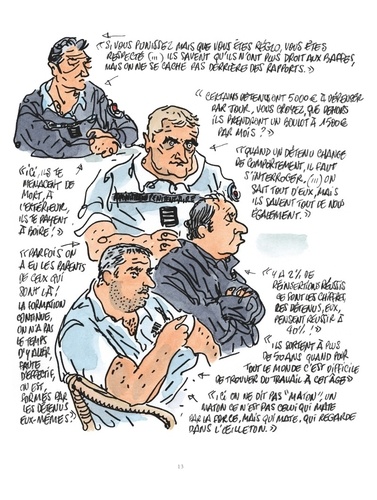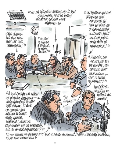 Ils sont détenus, gardiens, avocats, médecins ou visiteurs. Pour le meilleur et pour le pire, ils partagent un temps le même espace, fait de béton et de métal. Pour le meilleur et pour le pire, ils vivent ensemble. Et derrière ces murs, ce sont des histoires d'amour, d'amitié, de rébellion, des drames qui se nouent. Des tranches de vie que Dominique Paganelli et Tignous nous racontent dans ce reportage dessiné poignant. Enquête, témoignages, correspondances, interviews, les auteurs nous emmènent en immersion dans quelques-uns des plus grands centres pénitentiaires de France. Ils nous montrent comment l'humanité parvient à subsister quoi qu'il arrive, révélant au grand jour ces histoires dont on entend habituellement que les murmures...Tignous, qui avait découvert le dessin d'audience et obtenu la Carte de la Presse Judiciaire à l'issu du Procès Colonna, était passionné par l'univers judiciaire et avait notamment deux projets de livres issus d'audiences sur les Prud'hommes et les femmes battues qui lui tenaient particulièrement à coeur. Génie du dessin, il se révèle une fois encore dans cette oeuvre posthume en artiste engagé, humaniste et social.