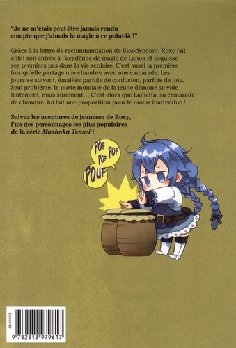 "Je ne m'étais peut-être jamais rendu compte que j'aimais la magie à ce point-là ! " Grâce à la lettre de recommandation de Bloodycount, Roxy fait enfin son entrée à l'académie de magie de Lanoa et esquisse ses premiers pas dans la vie scolaire. C'est aussi la première fois qu'elle partage une chambre avec une camarade. Les jours se suivent, émaillés parfois de confusion, parfois de joie. Seul problème, le porte-monnaie de la jeune démone se vide lentement, mais sûrement... C'est alors que Lanletta, sa camarade de chambre, lui fait une proposition pour le moins inattendue ! Suivez les aventures de jeunesse de Roxy, l'un des personnages les plus populaires de la série Mushoku Tensei !