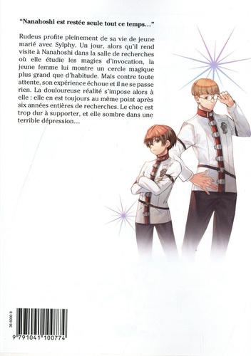 Sa première vie sur Terre avait été un ratage total. Réincarné dans un monde de magie et d'épées, Rudeus va tout faire pour éviter les erreurs du passé... et sera peut-être le nouveau héros d'un monde en péril ? "Nanahoshi est restée seule tout ce temps. . ". Rudeus profite pleinement de sa vie de jeune marié avec Sylphy. Un jour, alors qu'il rend visite à Nanahoshi dans la salle de recherches où elle étudie les magies d'invocation, la jeune femme lui montre un cercle magique plus grand que d'habitude. Mais contre toute attente, son expérience échoue et il ne se passe rien. La douloureuse réalité s'impose alors à elle : elle en est toujours au même point après six années entières de recherches. Le choc est trop dur à supporter, et elle sombre dans une terrible dépression...