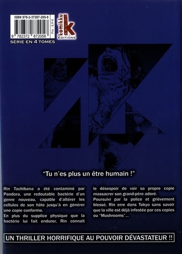 Rin Tachibana a été contaminé par Pandora, une redoutable bactérie d'un genre nouveau, capable d'altérer les cellules de son hôte jusqu'à en générer une copie conforme. En plus du supplice physique que la bactérie lui fait endurer, Rin connaît le désespoir de voir sa propre copie massacrer son grand-père adoré. Poursuivi par la police et grièvement blessé, Rin erre dans Tokyo sans savoir que la ville est déjà infestée par ces copies ou "Mushrooms"...