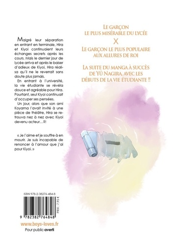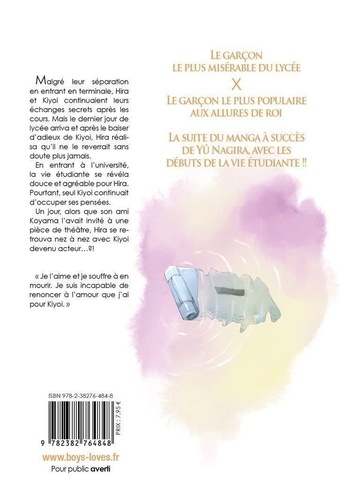 En entrant à l'université, la vie étudiante se révéla douce et agréable pour Hira. Pourtant, seul Kiyoi continuait d'occuper ses pensées. Un jour, alors que son ami Koyama l'avait invité à une pièce de théâtre, Hira se retrouva nez à nez avec Kiyoi devenu acteur...? ! "Je l'aime et je souffre à en mourir. Je suis incapable de renoncer à l'amour que j'ai pour Kiyoi."