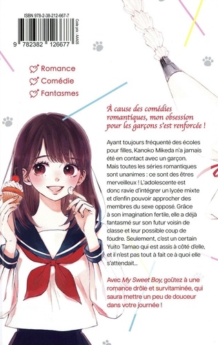 Avec My Sweet Boy, goûtez à une romance drôle et survitaminée, qui saura mettre un peu de douceur dans votre journée ! Ayant toujours fréquenté des écoles pour filles, Kanoko Mikeda n'a jamais été en contact avec un garçon. Mais toutes les séries romantiques sont unanimes : ce sont des êtres merveilleux ! L'adolescente est donc ravie d'intégrer un lycée mixte et d'enfin pouvoir approcher des membres du sexe opposé. Grâce à son imagination fertile, elle a déjà fantasmé sur son futur voisin de classe et leur possible coup de foudre. Seulement, c'est un certain Yuito Tamao qui est assis à côté d'elle, et il n'est pas tout à fait ce à quoi elle s'attendait...