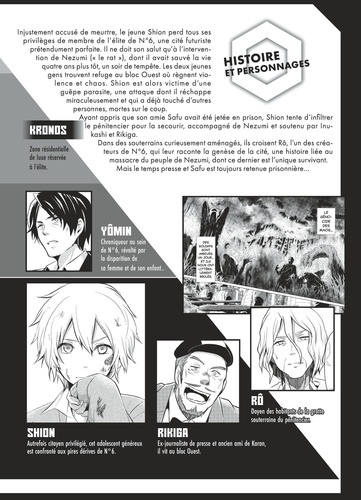 Après avoir traversé les souterrains, Shion et Nezumi parviennent à pénétrer dans l'enceinte de la prison. Leur objectif : délivrer Safu, retenue au tout dernier étage de l'établissement hautement sécurisé. Mais les obstacles continuent de s'accumuler sur leur passage, obligeant Shion à agir de façon irréversible. Alors que le chaos s'empare de la ville, les deux jeunes gens découvrent ainsi le funeste projet prévu par les autorités de N°6...