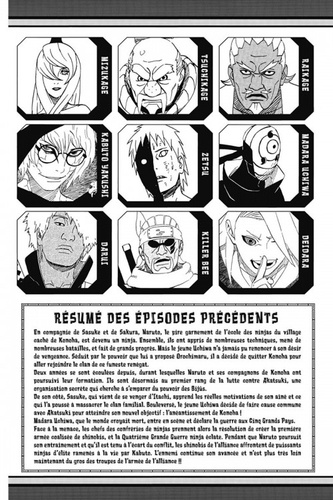 La guerre a commencé, et le conflit prend des proportions de plus en plus importantes ! L’armée coalisée de shinobis doit faire face à de puissants ninjas d’élite qui ont été ramenés à la vie. Le 1er bataillon, déployé en première ligne et mené par le commandant Darui, se retrouve nez à nez avec les frères Kinkaku et Ginkaku, deux ninjas légendaires du village caché des Nuages, qui manient des armes redoutables et possèdent du chakra de Kyûbi ! Quelle sera l’issue du combat...?!