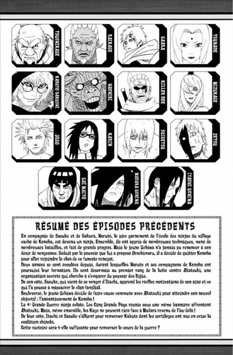 En neutralisant Kabuto, Itachi parvient du même coup à briser Edotensei, ce sort de nécromancie qui avait semé tant de troubles dans les rangs de la coalition. Mais la haine de Sasuke envers Konoha ne retombe pas pour autant. Avant de quitter cette terre, Itachi livre ses dernières paroles à son jeune frère. Sur l'autre versant du front, la bataille redouble d'intensité pour Naruto et ses amis... !!