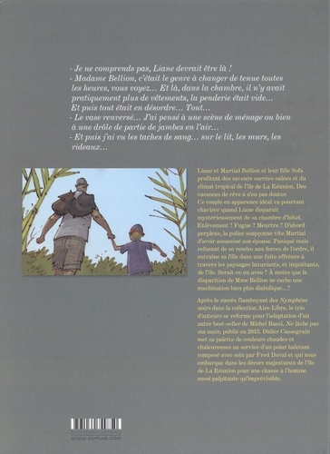 Quand Liane disparaît de l'hôtel, son mari, Martial, devient le coupable idéal. Désemparé, ne sachant comment prouver son innocence, il prend la fuite avec leur fille de 6 ans. Pour la police, cela sonne comme un aveu : la course-poursuite, au coeur de la nature luxuriante de l'île, est lancée. Une officier de police opiniâtre pourra-t-elle appréhender le suspect ? Après le succès de l'adaptation en bande dessinée de son roman Les Nymphéas noirs, Michel Bussi revient en compagnie de Fred Duval et Didier Cassegrain pour Ne lâche pas ma main, un thriller haletant au coeur de l'île de La Réunion.