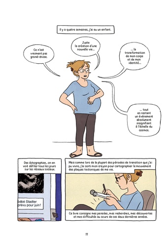 Depuis toujours, Lucy est animée par un rêve d'enfant. Ce désir vit en elle, mais les choses ne se passent pas toujours comme prévu... L'autrice raconte ici ses attentes et son parcours parfois difficile de future mère, avec la douleur d'une fausse couche, ainsi que son évolution personnelle, celle de son compagnon et de leurs proches au cours de ces 9 mois de grossesse entre drame et joie. Dans ce récit intime, sincère et très documenté, l'autrice confie ses doutes et ses espoirs tout en proposant des observations pratiques. C'est aussi toute la dimension culturelle de la grossesse qu'interroge le témoignage de Lucy Knisley, des superstitions les plus absurdes jusqu'à certaines idées reçues qui perdurent encore, souvent dans le but de dominer autant que possible le corps des femmes.