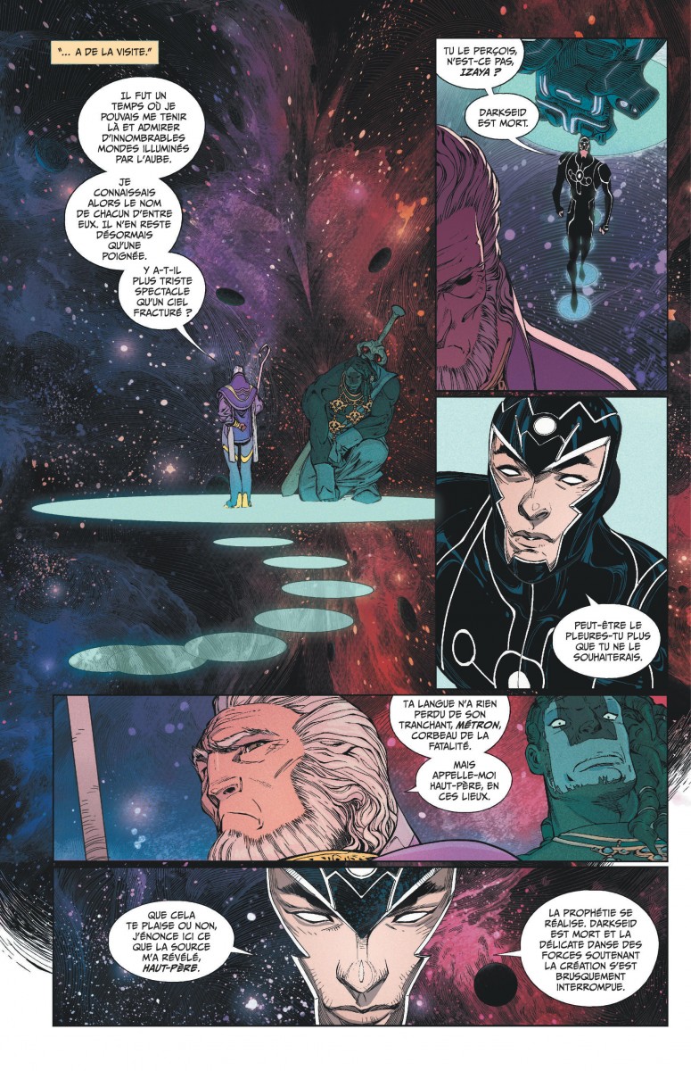Un dieu est mort, et les répercussions de son décès se font sentir dans tout l'univers, déclenchant un conflit intergalactique et réveillant les pouvoirs latents d'un mystérieux enfant sur Terre. Mais tout cela a été prophétisé par la Source et transmis sous forme d'images énigmatiques à son agent, Metron. Alors que ce dernier annonce aux habitants de Néo-Genesis et d'Apokolips leur funeste destin, les deux mondes sont plongés dans le chaos et la guerre. Sur Terre, Scott Free et Barda ne sont pas conscients du chaos qui s'annonce alors qu'ils sont accaparés par leur tâche la plus intimidante : devenir parents.