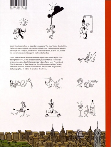 Joost Swarte contribue au légendaire magazine The New Yorker depuis 1994. Ce livre présente plus de 450 dessins réalisés pour l'hebdomadaire pendant ces vingt ans : croquis, illustrations de toutes tailles, et bien sûr, toutes les couvertures exécutées par le maître néerlandais. Joost Swarte fait de la bande dessinée depuis 1968. Dans la plus pure des lignes claires, il met en scène et en jeu des thèmes complexes et contemporains. Ses histoires ont paru dans Tante Leny Presenteert, Charlie Mensuel et Raw Magazine. Il combine ses activités d'auteur de bande dessinée à celles d'illustrateur, d'architecte, de graphiste, de typographe... et même de créateur de vitraux.