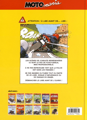 Avertissement aux lecteurs : les scènes de conduite représentées dans cet album sont effectuées par des fous professionnels. À ne pas reproduire sur vos routes, surtout si la police est dans les parages ! Laissez plutôt ça aux cinglés de Motomania qui sont de retour pour exploser une nouvelle fois la zone rouge tous azimuts, au mépris des règles de bonne conduite élémentaires !Avec ces gags au dessin "gros nez", entre école belge et Ralf König, retrouvez la belle bande de bras cassés de notre ami Holger Aue, dont la seule passion est de manger des kilomètres et d'exploser les compteurs de la police !