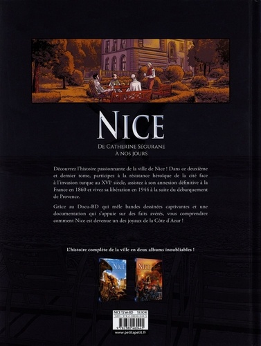 Découvrez la ville de Nice avec un Docu-BD passionnant ! Ce deuxième et dernier tome retrace son histoire, de la résistance de la cité face à l'invasion turque au XVIe siècle jusqu'à nos jours, en passant par son annexion définitive à la France en 1860 ou sa libération suite au débarquement de Provence.