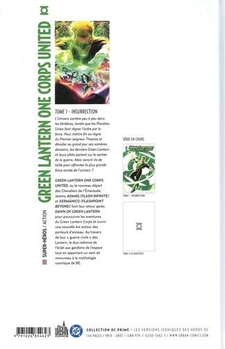 L'Univers sombre peu a peu dans les ténèbres, tandis que les Planètes Unies font régner l'ordre par la force. Pour mettre fin au règne du Premier seigneur Thaaros et dévoiler au grand jour ses sombres desseins, les derniers Green Lantern et leurs alliés partent sur le sentier de la guerre. Mais seront-ils de taille pour affronter la plus grande force armée de l'univers ? Green Lantern One Corps United, ou le nouveau départ des Chevaliers de l'Emeraude. Jeremy Adams (Flash Infinite) et Xermànico (Flashpoint Beyond) font leur retour après Dawn of Green Lantern pour poursuivre les aventures du Green Lantern Corps et ouvrir une nouvelle ère autour des porteurs d'anneau. Au travers de leur "guerre civile" des Lantern, le duo redonne de le l'éclat aux gardiens de l'espace tout en apportant un vent de renouveau à la mythologie cosmique de DC.