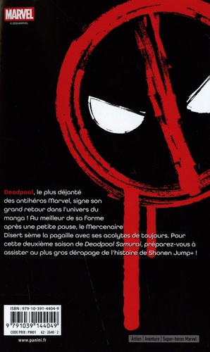 On dit de Deadpool qu'il est irresponsable, ingérable et un tantinet violent. Le voilà de retour au Japon, après une longue absence. Forcément, le mercenaire disert a l'intention de retrouver ses vieux amis ! Mais changement de plan quand un nouveau méchant surgit et s'en prend à Sakura Spider. Et s'il y a bien une chose qui insupporte Deadpool, c'est que l'on vienne gâcher la fête. Bonne chance à son nouvel ennemi ! La collaboration entre Marvel et le Shonen Jump est un succès ! Le mercenaire disert est aussi à l'aise dans l'univers des manga que dans celui familier des comics. Les codes se mélangent et donnent naissance à une aventure déjantée ! Prépubliée dans le Shonen Jump +, le magazine web de la Shueisha, cette série a débuté par un one-shot avant de proposer une première saison en deux tomes. Aujourd'hui, nous sommes ravis d'annoncer le retour de Deadpool pour une saison 2 encore plus loufoque !