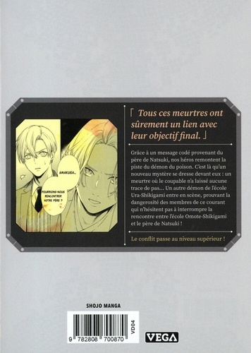 (Tous ces meurtres ont sûrement un lien avec leur objectif final). Grâce à un message codé provenant du père de Natsuki, nos héros remontent la piste du démon du poison. C'est là qu'un nouveau mystère se dresse devant eux : un meurtre où le coupable n'a laissé aucune trace de pas... Un autre démon de l'école Ura-Shikigami entre en scène, prouvant la dangerosité des membres de ce courant qui n'hésitent pas à interrompre la rencontre entre l'école Omote-Shikigami et le père de Natsuki ! Le conflit passe au niveau supérieur !
