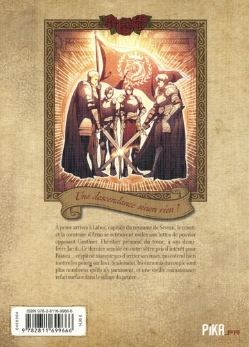 A peine arrivés à Lahoz, capitale du royaume de Sevran, le comte et la comtesse d'Arno se retrouvent mêlés aux luttes de pouvoir opposant Gauthier, l'héritier présumé du trône, à son demi-frère Jacob. Ce dernier semble en outre s'être pris d'intérêt pour Bianca... ce qui ne manque pas d'irriter son mari, qui entend bien mettre les points sur les i. Seulement, les ennemis du couple sont plus nombreux qu'ils n'y paraissent, et une vieille connaissance refait surface dans le sillage du prince...