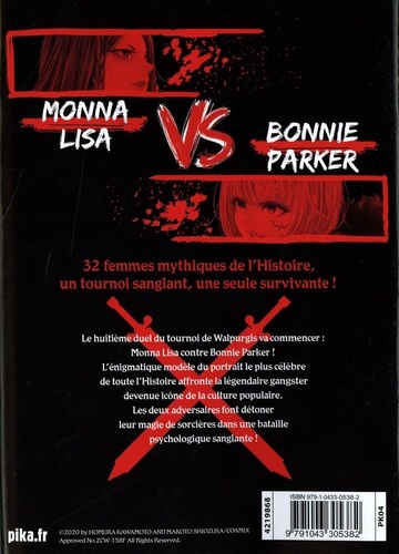 32 femmes mythiques de l'Histoire, un tournoi sanglant, une seule survivante ! Le huilière tournoi de Walpurgis va commencer : Mon Lisa contre Bonnie Parker ! L'énigmatique modèle du portrait le plus célèbre de toute l'Histoire affronte la légendaire gangster devenue icône de la culture populaire. Les deux adversaires font détoner leur magie de sorcières dans une bataille psychologique sanglante !