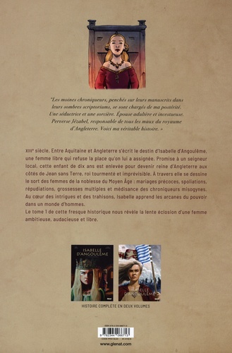 Une reine à l'aube de sa destinée XIIIe siècle. Entre Aquitaine et Angleterre, le destin d'une femme libre, Isabelle d'Angoulême, qui refuse la place qu'on lui a assignée. A peine âgée de dix ans, cette jeune noble à la beauté troublante et à l'intelligence acérée voit son destin basculer le jour de son mariage. Promise à un seigneur local, elle est enlevée pour devenir reine d'Angleterre en épousant Jean sans Terre, roi tourmenté et imprévisible. Derrière les dorures de la cour se cachent intrigues, trahisons et ambitions dévorantes. Petite fille propulsée à la tête d'un royaume sur le point de sombrer dans le chaos, Isabelle prend ses marques auprès de ce souverain torturé et se forge dans la tourmente. Pour s'imposer, elle comprend qu'il ne suffit pas d'être reine, il faut être redoutable. Car la belle-fille d'Aliénor d'Aquitaine aspire à marquer l'Histoire. Enfant devenue reine, souveraine adulée puis rejetée, comtesse guerrière manoeuvrant habilement pour se tailler un royaume parmi les puissants, ambitieuse vassale appelant à la révolte des seigneurs, elle finit sa vie repentie, expiant ses péchés. Entre passion et stratégie, loyauté et vengeance, Isabelle d'Angoulême incarne, plus que jamais, la puissance au féminin dans un monde d'hommes. Portée par le scénario affûté de Sophie Fougère et le trait élégant de Claudio Montalbano, cette fresque historique nous plonge dans la vie épique d'une souveraine aussi fascinante que controversée. Entre complots, batailles et trahisons, le duo qui entre au catalogue Glénat nous offre un premier tome captivant et féministe dans lequel nous assistons à l'éclosion d'une femme stratège et libre.