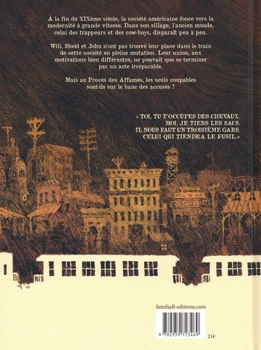 A la fin du XIXème siècle, la société américaine fonce vers la modernité à grande vitesse. Dans son sillage, l'ancien monde, celui des trappeurs et des cow-boys, disparaît peu à peu. Will, Sheld et John n'ont pas trouvé leur place dans le train de cette société en pleine mutation. Leur union, aux motivations bien différentes, ne pouvait que se terminer par un acte irréparable. Mais au Procès des Affamés, les seuls coupables sont-ils sur le banc des accusés ? "TOI, TU T'OCCUPES DES CHEVAUX. MOI, JE TIENS LES SACS. IL NOUS FAUT UN TROISIEME GARS. CELUI QUI TIENDRA LE FUSIL".