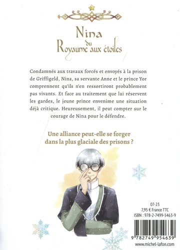 Prix Kodansha du meilleur shojo 2022 Prix Japannecy 2023 Le destin d'une jeune orpheline devenue princesse. Condamnés aux travaux forcés et envoyés à la prison de Griffigeld, Nina, sa servante Anne et le prince Yor comprennent qu'ils n'en ressortiront probablement pas vivants. Et face au traitement que lui réservent les gardes, le jeune prince envenime une situation déjà critique. Heureusement, il peut compter sur le courage de Nina pour le défendre. Une alliance peut-elle se forger dans la plus glaciale des prisons ?