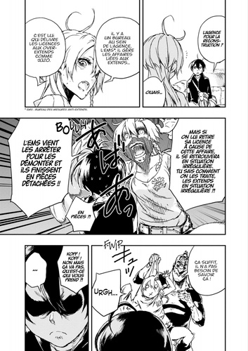 "Mon nom ? Jûzô Inui. Depuis la grande guerre, je gagne ma vie dans cette ville grouillante d'extends : des hommes à qui on a implanté la technologie d'extension des mécanismes corporels. Mon business ? Résoudre des affaires impliquant les extends." Afin de sauver le jeune Tetsurô des griffes de Berühren, gigantesque multinationale qui règne sur la ville, Jûzô a utilisé son revolver. Mais l'utilisation d'extensions meurtrières étant interdite par la loi extend, Jûzô risque désormais l'arrestation et le démontage par l'agence pour la reconstruction, qui contrôle les extends...