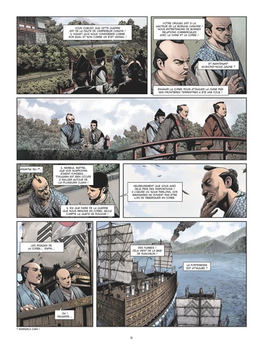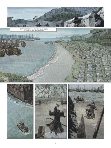 Quand un amiral devient une légende 1598. Voilà six ans que dure la guerre opposant l'empire japonais de Hideyoshi Toyotomi à l'alliance formée entre la Chine des Ming et la Corée des Chosôn. Six années d'innombrables batailles et de paix éphémères. Mais Hideyoshi décède emporté par la maladie et le Japon sombre immanquablement dans des querelles internes de succession pour reprendre la régence du pays. Dès lors, de nombreux daimyos sont de moins en moins convaincus de la pertinence des combats en Corée et selon leur alliance, ils vont progressivement retirer leurs hommes du sol coréen. Mais une retraite ne peut s'improviser. Les Coréens et leurs alliés chinois ont soif de victoires. Quant aux Japonais, leur orgueil leur impose de quitter le pays avec les apparats du vainqueur et non avec ceux du pleutre qui fuit la bataille. C'est alors qu'un amiral coréen va démontrer toute sa science de le guerre navale pour infliger aux légendaires samouraïs l'une de leur plus cinglante défaite. Yi Sun sin rentrera pour toujours dans l'histoire mais y perdra la vie, tout comme, quelques siècles plus tard, un certain Horatio Nelson.