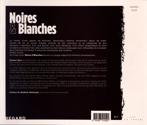 Le temps d'une galerie de portraits, trente-deux femmes deviennent soeurs de traits. Dames de fer ou muses d'argile, proches de leur naissance ou au crépuscule de leur parcours, originaires d'un sud épuisé, d'un nord désabusé, d'un orient énigmatique ou d'un occident en trompe-l'oeil, elles autorisent le clair-obscur à découper leurs silhouettes et à sculpter leurs histoires. De temps à autre plus lumineuses que sombres. Parfois moins. Au fil des mots, Noires & Blanches devient un voyage subjectif en féminité contemporaine...