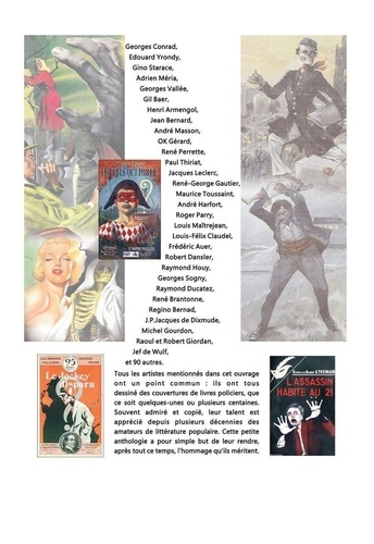 Tous les artistes mentionnés dans cet ouvrage ont un point commun : ils ont tous dessiné des couvertures de livres policiers, que ce soit quelques-unes ou plusieurs centaines. Souvent admiré et copié, leur talent est apprécié depuis plusieurs décennies des amateurs de littérature populaire. Cette petite anthologie a pour simple but de leur rendre, après tout ce temps, l'hommage qu'ils méritent.