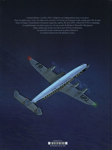 Juillet 1962. L'Algérie est indépendante. Pour les pieds-noirs c'est "la valise ou le cercueil" . Dans un Constellation s'entassent rapatriés, espion, flic de la DST, colonel de l'OAS, et équipage. Au-dessus d'Oran en flammes, les autorités donnent l'ordre d'atterrir, et la tension monte de plusieurs crans... S'inspirant d'un souvenir d'enfance, Jean-Laurent Truc signe pour Patrick Jusseaume son premier scénario. Le dessinateur de "Tramp" storyboarde quelques pages avant de disparaître. Olivier Mangin lui succède au dessin, avec talent.