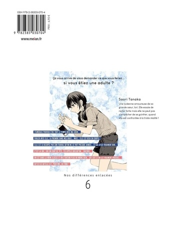 Ca vous arrive de vous demander ce que vous feriez... si vous étiez une adulte ? Saori Tanaka : Une lycéenne amoureuse de sa grande soeur, Iori. Elle essaie de rester forte mais elle ne peut pas s'empêcher de se goinfrer, quand elle est confrontée à la triste réalité ! J'aimerais pouvoir être tout le temps avec ma soeur... Parler avec elle, la prendre dans mes bras... Mais... Elle est déjà en couple. Elle est si occupée par son travail qu'on ne se voit presque jamais... Et ça, c'est vraiment dur... C'est là que, sur un coup de tête, j'ai appelé quelqu'un... Shizuku... On est dans la même classe et on s'entend plus ou moins bien... qui sait si on est vraiment proches... Qu'est-ce qu'elle est, pour moi, au fond ?