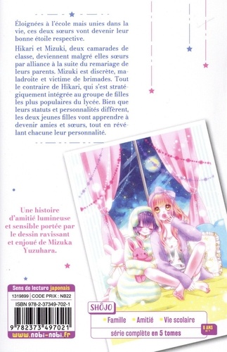 Eloignées à l'école mais unies dans la vie, ces deux soeurs vont devenir leur bonne étoile respective. Hikari et Mizuki, deux camarades de classe, deviennent malgré elles soeurs par alliance à la suite du remariage de leurs parents. Mizuki est discrète, maladroite et victime de brimades. Tout le contraire de Hikari, qui s'est stratégiquement intégrée au groupe de filles les plus populaires du lycée. Bien que leurs statuts et personnalités diffèrent, les deux jeunes filles vont apprendre à devenir amies et soeurs, tout en révélant chacune leur personnalité. Une histoire d'amitié lumineuse et sensible portée par le dessin ravissant et enjoué de Mizuka Yuzuhara.