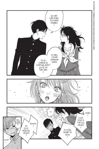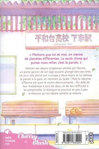Nozomi Aïzawa voue depuis longtemps un amour caché à Azuma. Un jour, elle prend son courage à deux mains et lui adresse la parole à la gare, en rentrant du lycée ! Mais la réponse d'Azuma est pour le moins déconcertante... Au-delà de leur maladresse à tous les deux, et de leur difficulté à se comprendre, le dialogue se poursuit, et peu à peu la distance semble se réduire...