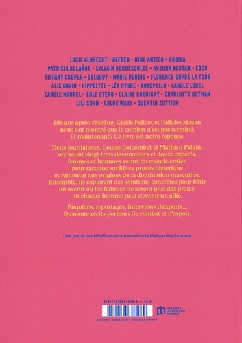 Dix ans après #MeToo, Gisèle Pelicot et l'affaire Mazan nous ont montré que le combat n'est pas terminé. Et maintenant ? Ce livre est notre réponse. Deux journalistes, Louise Colcombet et Mathieu Palain, ont réuni vingt-trois dessinateurs et douze experts, femmes et hommes venus du monde entier, pour raconter en BD ce procès historique et remonter aux origines de la domination masculine. Ensemble, ils explorent des solutions concrètes pour bâtir un avenir où les femmes ne seront plus des proies, où chaque homme peut devenir un allié. Enquêtes, reportages, interviews d'experts... Quarante récits porteurs de combat et d'espoir.