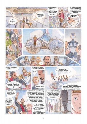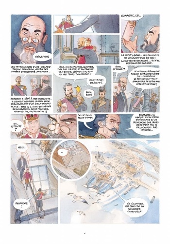 1874, menacés par les aigles de Bismarck qui envahissent Mars, Hans, Séraphin, Sophie, Loïc et la princesse trouvent refuge dans le Château des étoiles. Ils y trouvent le roi Ludwig totalement dépourvu de raison et la source d'énergie tant recherchée qui est détruite lors d'un combat les affrontant à Van Gudden. Nos héros décident alors de retourner sur Terre pour demander l'aide de Napoléon III. Séraphin y découvre qu'en échange du savoir-faire de son père, la France ne rentre pas en conflit avec la Prusse pour la conquête de Mars. Bismarck est désormais libre d'y exploiter les réserves d'éthérite et d'asservir les Martiaux. Tandis que son père lui demande de ne pas s'immiscer dans les enjeux géopolitiques en cours, les tensions s'intensifient, Séraphin comprend qu'il doit assumer seul ses décisions et son engagement. Les chimères de Venus t1 1874, dans l'univers du Château des étoiles. La conquête de l'espace a commencé depuis cinq ans et les puissances terrestres colonisent le système solaire. France et Angleterre se disputent la souveraineté de Vénus. Conformément à l'imaginaire scientifique de l'époque, il s'agit d'un monde-jungle couvert de brume, où la vie est encore à un stade primordial. C'est là que débarque Hélène Martin, actrice d'opéra-bouffe à la recherche de son fiancé, le poète Aurélien d'Hormont, évadé des bagnes de Napoléon III. Poursuivie par l'inquiétant duc de Chouvigny, entraînée dans la rivalité des empires, Hélène s'aventurera à travers des jungles infestées de dinosaures et sur des océans déchaînés jusqu'aux plus étranges confins de l'astre, où se dressent encore les vestiges d'une mystérieuse civilisation.