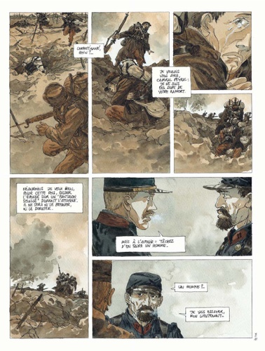 À la fin du premier tome, Jolicoeur, salement blessé, se retrouve seul dans le no man’s land séparant les lignes françaises des lignes allemandes. Pas moyen pour le caporal Peyrac, et ce qui reste de ses « gamins », de lui venir en aide. Le tome 2 commence par un retour sur ce jour funèbre, le 8 janvier 1915, qui a vu les deux tiers de la section Peyrac mourir au combat. C’est la guerre dans toute son épouvante. Dans son lit de douleur, le lieutenant Vialatte poursuit son récit à l’attention du prêtre qui le veille : non, les assassinats de femmes ne se sont pas arrêtés. Après Joséphine, la serveuse, Mariette, l’infirmière, et Irène, la journaliste, une quatrième victime est découverte : Mathilde Doorne, prostituée que fréquentait assidûment le capitaine Janvier… Quatre assassinats, un gendarme qui essaie de faire le lien entre eux, et un étrange comportement, celui de Janvier…