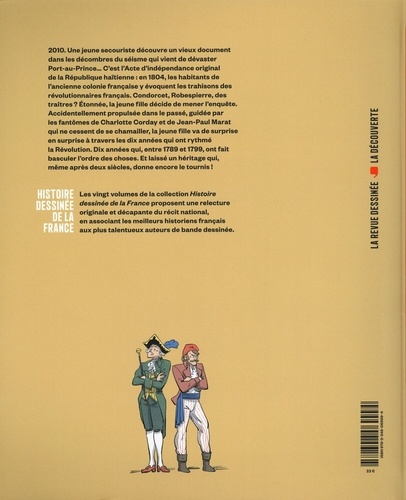 2010. Une jeune secouriste découvre un vieux document dans les décombres du séisme qui vient de dévaster Port-au-Prince... C'est l'Acte d'indépendance original de la République haïtienne : en 1804, les habitants de l'ancienne colonie française y évoquent les trahisons des révolutionnaires français. Condorcet, Robespierre, des traîtres ? Etonnée, la jeune fille décide de mener l'enquête. Accidentellement propulsée dans le passé, guidée par les fantômes de Charlotte Corday et de Jean-Paul Marat qui ne cessent de se chamailler, la jeune fille va de surprise en surprise à travers les dix années qui ont rythmé la Révolution. Dix années qui, entre 1789 et 1799, ont fait basculer l'ordre des choses. Et laissé un héritage qui, même après deux siècles, donne encore le tournis !