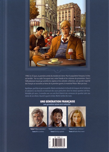 Dans cette série chorale s'incarnent, en trois personnages principaux, trois attitudes de la population française face à l'Occupation nazie : l'exil et la lutte armée suite à l'appel du Général de Gaulle ; la collaboration dans les traces du maréchal Pétain ; la Résistance. Une génération française constitue un panorama général de la société française d'avant-guerre, où se dessinent 3 choix de vie, façonnés par l'histoire familiale des héros et par le tournant de l'Histoire. Martin Favre est étudiant à la faculté de langue de la Sorbonne. Il habite une chambre de bonne d'un grand hôtel particulier, et donne des cours aux lycéens des beaux quartiers, ce qui lui assure un niveau de vie très convenable. Séducteur, il virevolte des serveuses du quartier Latin, aux mères de ses élèves. Quand la guerre éclate, Martin tombe des nues.